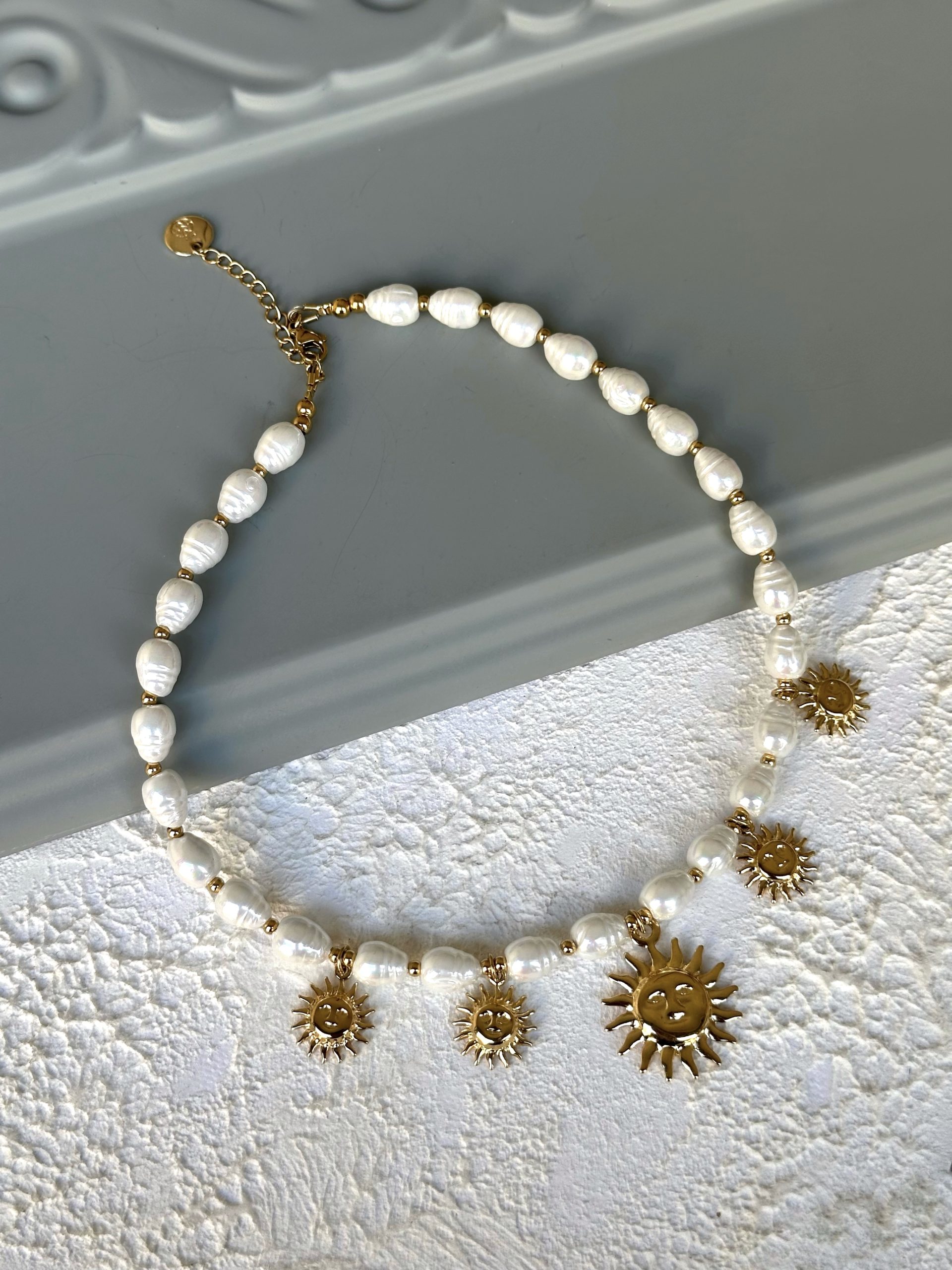 - Κολιέ με στοιχεία από ατσάλι και μαργαριτάρια