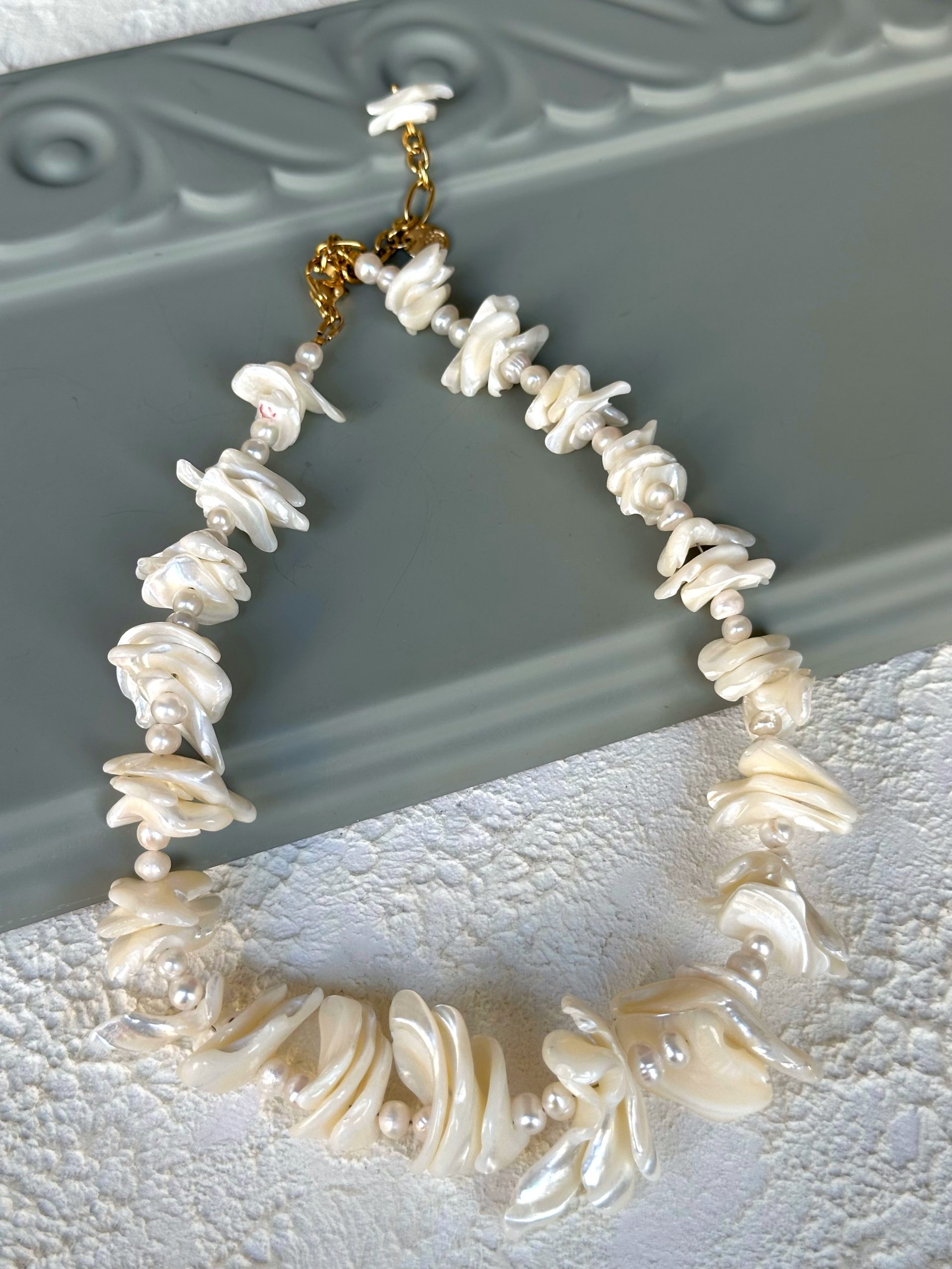 - Κολιέ με στοιχεία από ατσάλι και μαργαριτάρια