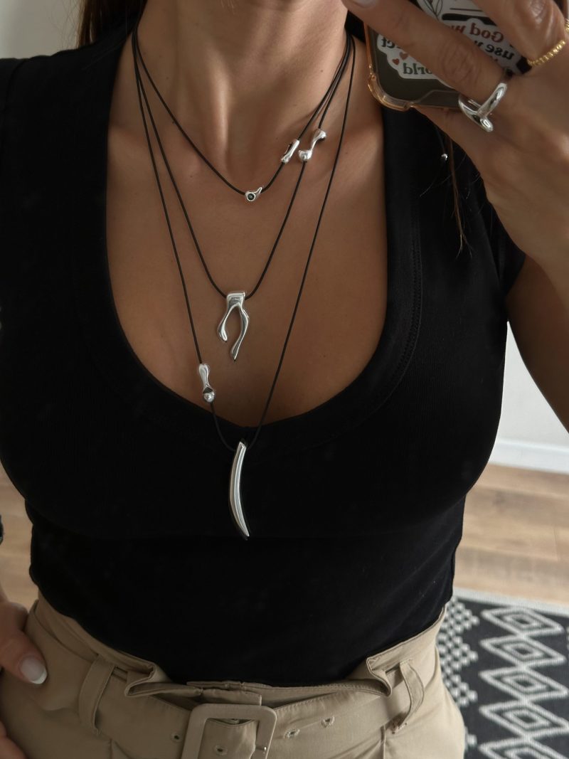 - Κολιέ με μαργαριτάρια και στοιχεία από ατσάλι