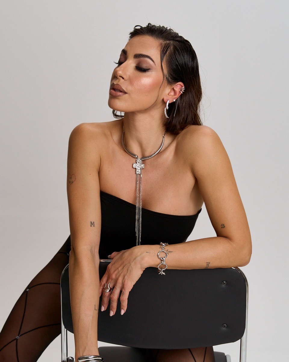 - Κολιέ από ατσάλι με μάκρος αλυσίδες