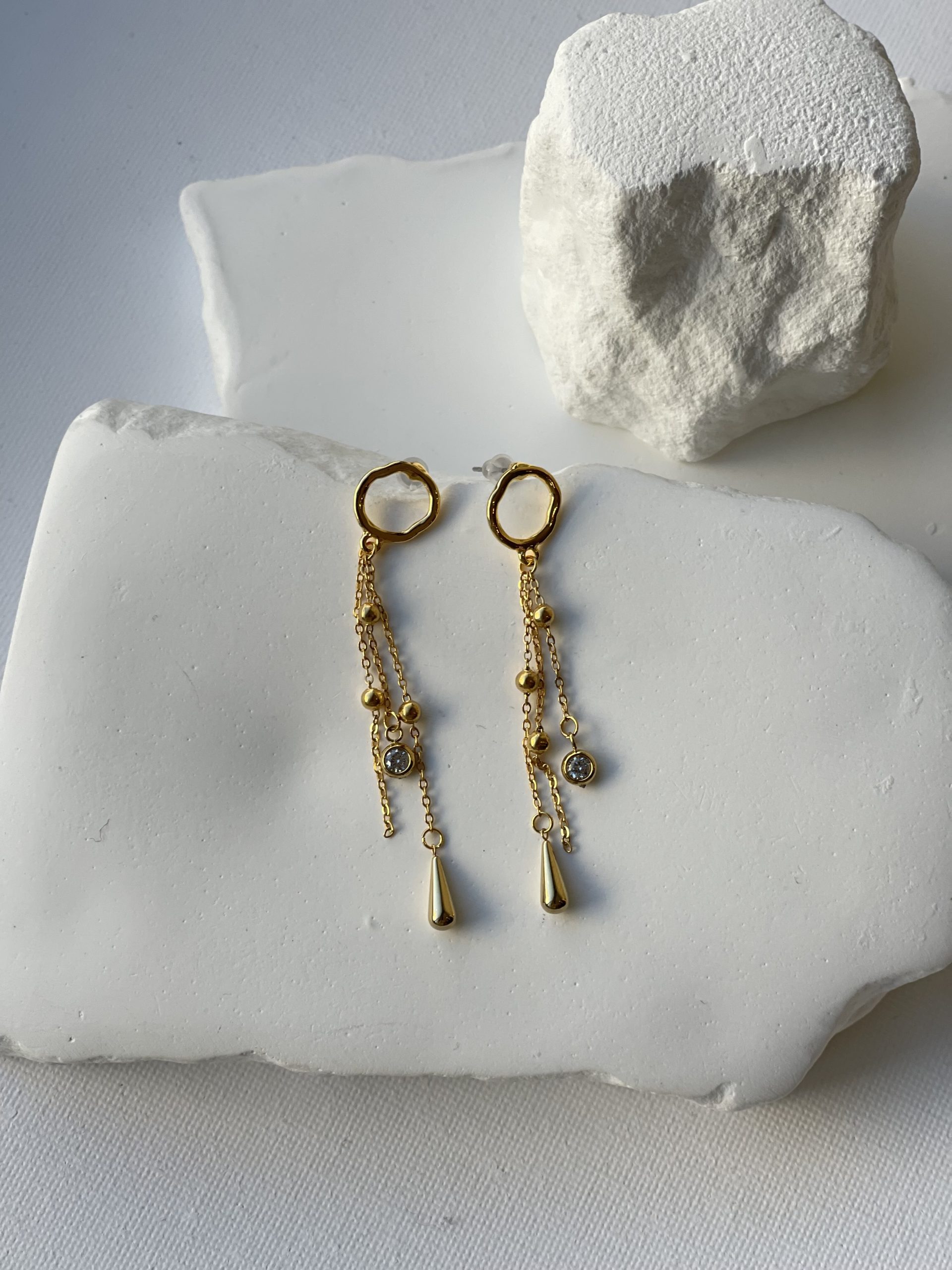 - Χειροποίητα σκουλαρίκια με βάση και αλυσίδες από ατσάλι