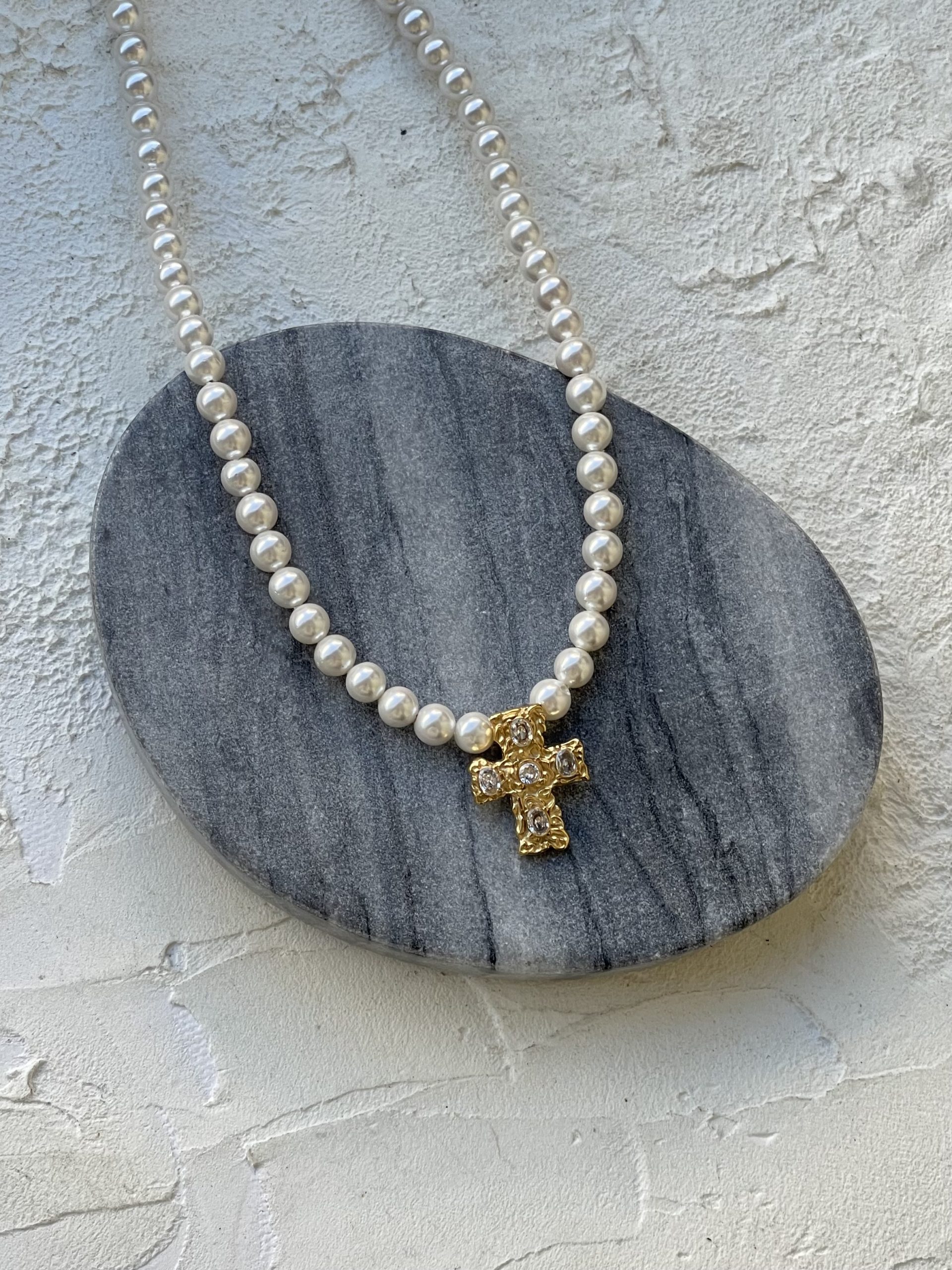- Κολιε με μαργαριτάρια και στοιχείο από ατσάλι