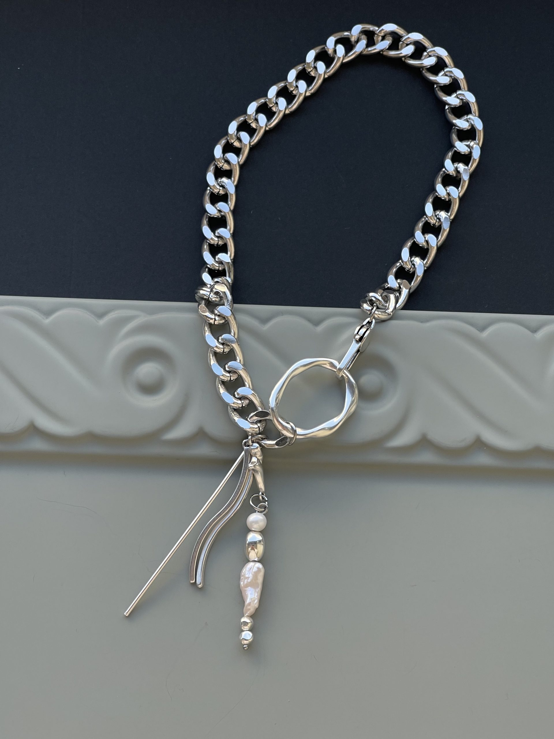 - Χειροποίητο κολιέ με στοιχεία από ατσάλι και ορείχαλκο